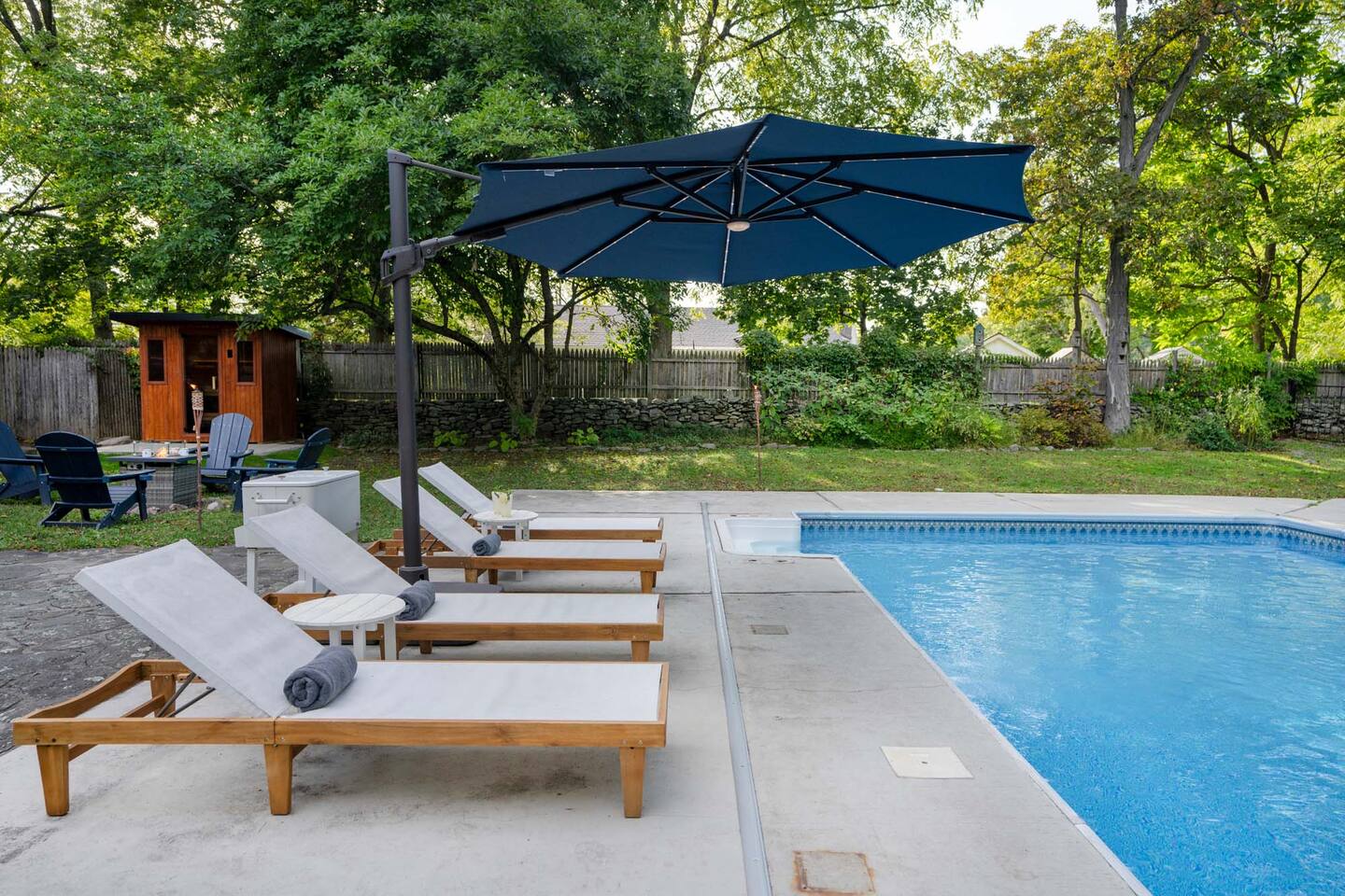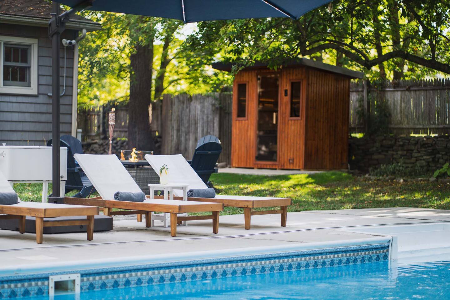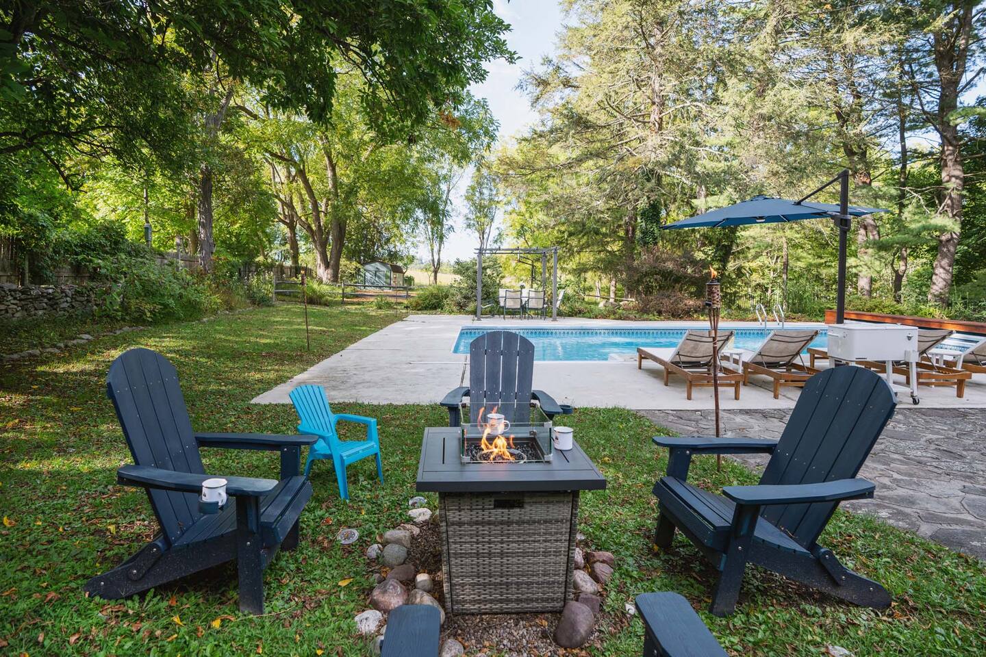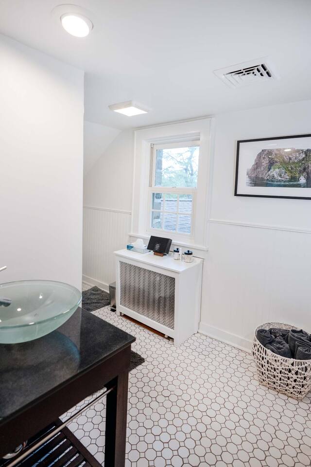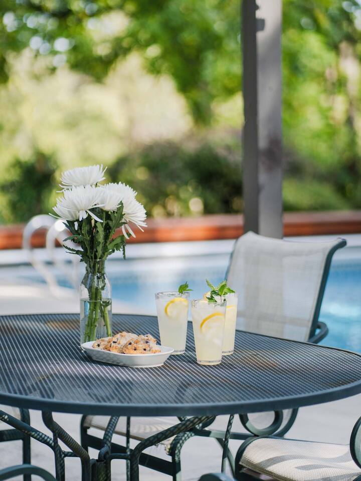 Accommodations: - Bedroom 1 (Primary): King Bed (w/ ensuite bathroom) - Bedroom 2: King Bed - Bedroom 3: King Bed - Bedroom 4: Queen Bed - 2.5 bathrooms - Large soaking tub in master bathroom - All rooms are cleaned to highest standards - High-end mattresses and linens - Central air & heat in all bedrooms Amenities: - Heated saltwater pool (private) - Luxury Finnish sauna (new!) - Premium hot tub (new!) - Professional pickleball court - Basketball court w/ brand new basket - Outdoor fire pit - Fireplace - Art station (perfect for kids!) - Nex Playground Gaming Console for Kids - Dozens of games & books (kids & adults!) - Pond - Horseback riding (borders the backyard) - Super fast Wi-Fi for remote work - Top-of-the-line desks & ergonomic chairs - Chef-quality MadeIn cookware - Luxury coffee accessories Location: - 1 min (or walk) to Storm King Art Center - 15 min to West Point (Go Army!!) - 25 min to Legoland - 10 min to Woodbury Commons (outlets) - 5 min to Storm King State Park - 20 min to Bear Mountain State Park - 5 min to top Hudson Valley trailheads - Bordered by horseback riding farm - Close to breweries, wineries & cideries Traveling with little ones? An automatic pool safety cover is available upon request to give parents extra peace of mind.