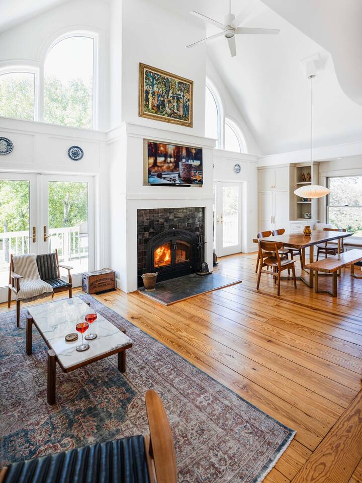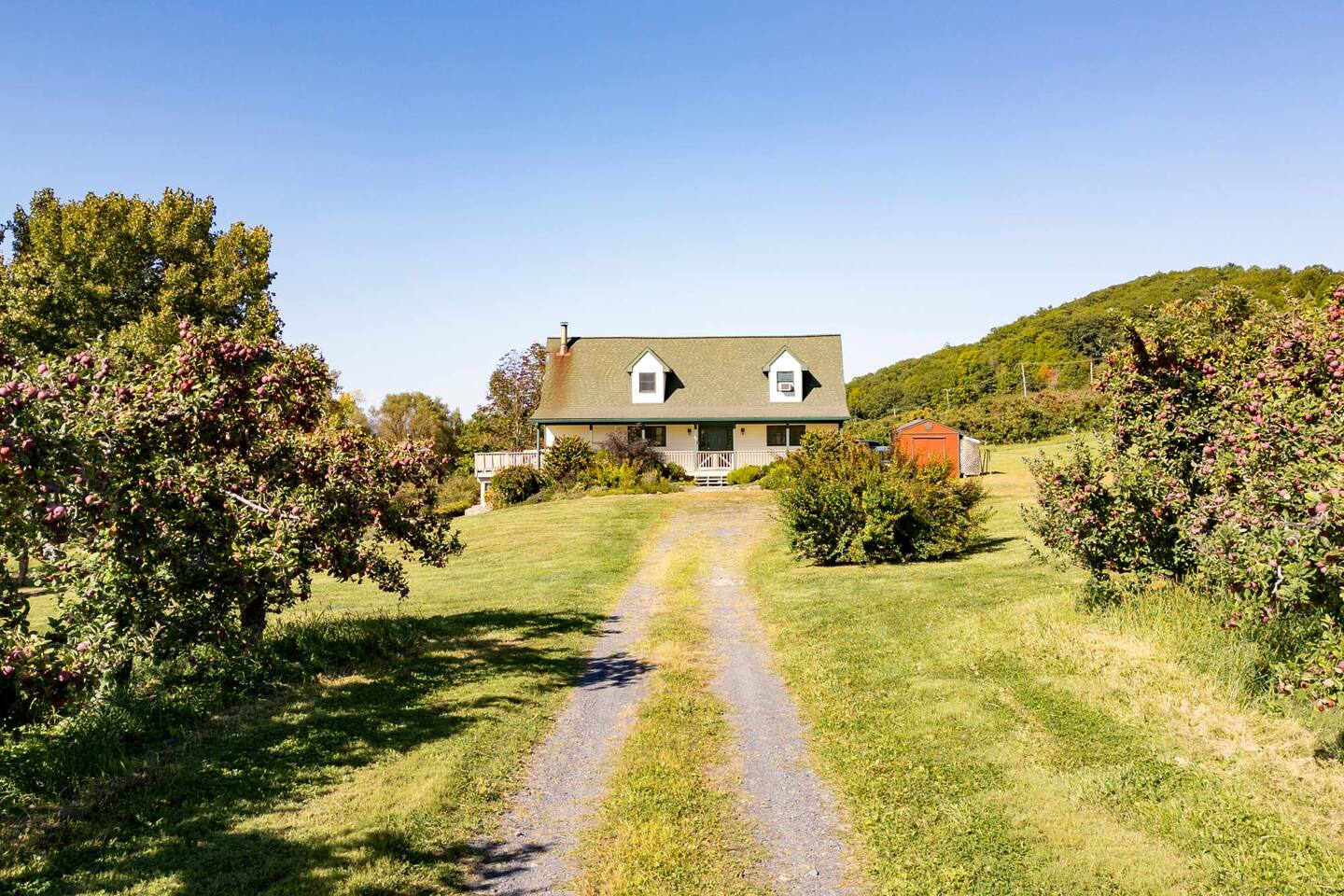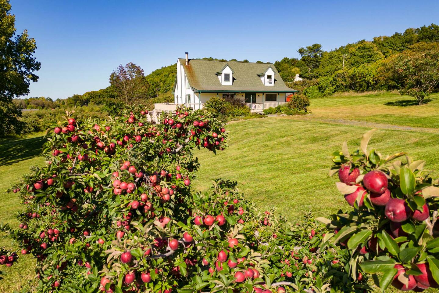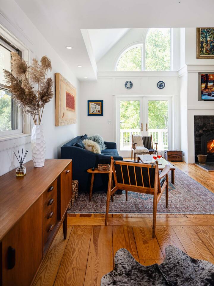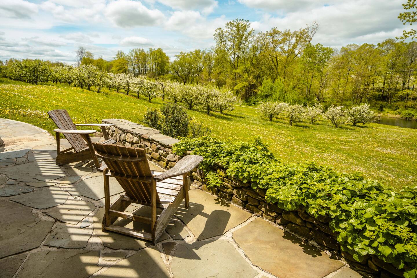 Surrounded by the breathtaking landscape of the Hudson Valley, our charming retreat is a hidden gem nestled within lush orchards. Imagine waking up to the gentle rustle of leaves and the sweet fragrance of ripe fruit. Spend your days strolling through nearby orchards, hiking scenic trails, or simply lounging on the deck, taking in the breathtaking views of the two ponds and vibrant sunsets. Walk for a delicious lunch or dinner at the nearby The Ridge by Mill House.