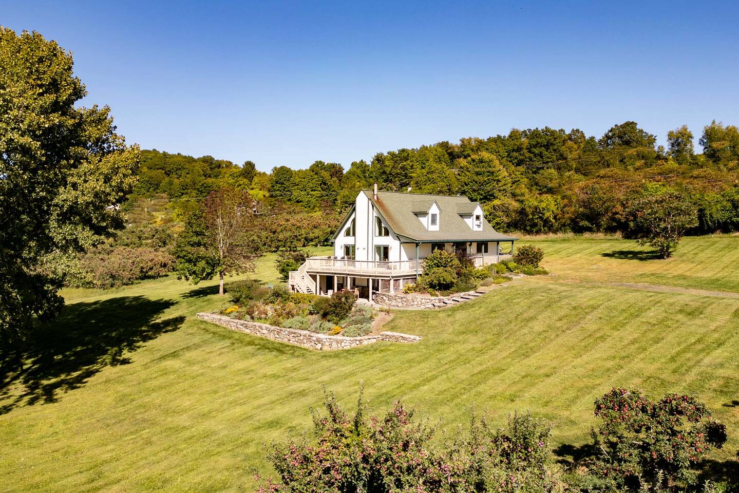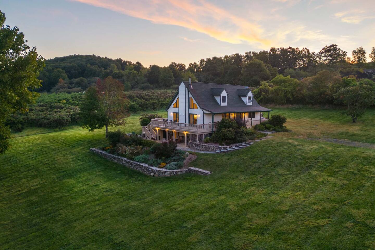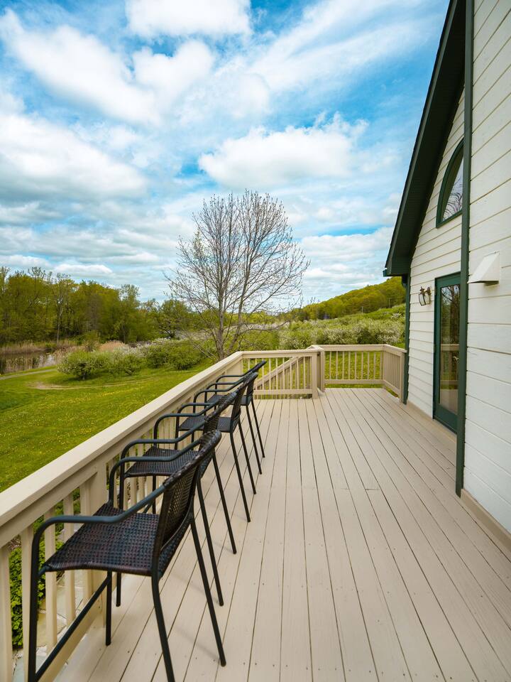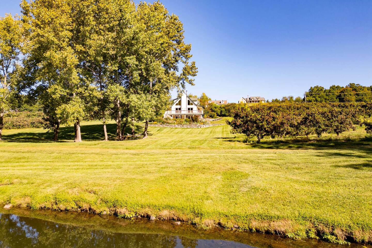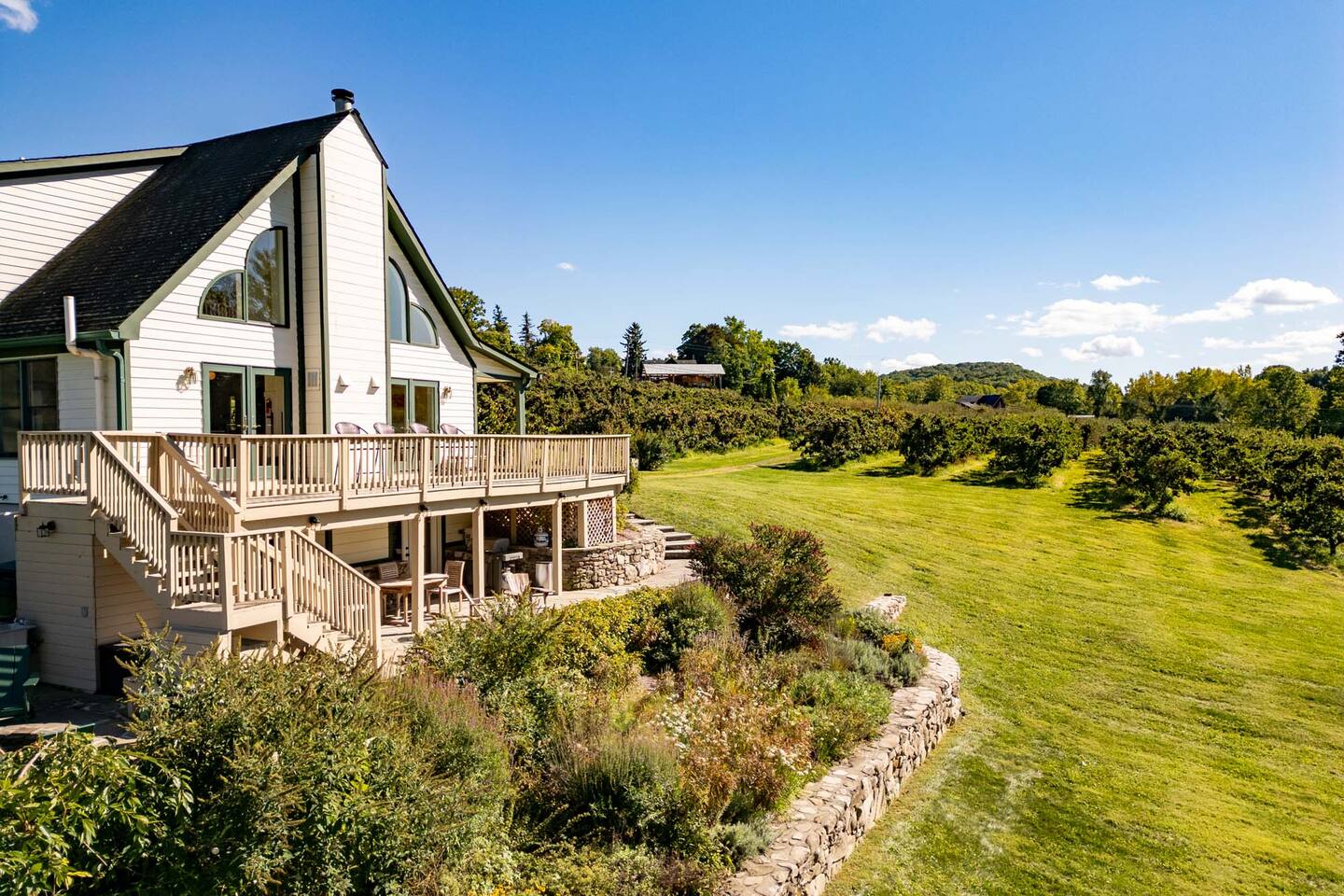 Surrounded by the breathtaking landscape of the Hudson Valley, our charming retreat is a hidden gem nestled within lush orchards. Imagine waking up to the gentle rustle of leaves and the sweet fragrance of ripe fruit. Spend your days strolling through nearby orchards, hiking scenic trails, or simply lounging on the deck, taking in the breathtaking views of the two ponds and vibrant sunsets. Walk for a delicious lunch or dinner at the nearby The Ridge by Mill House.
