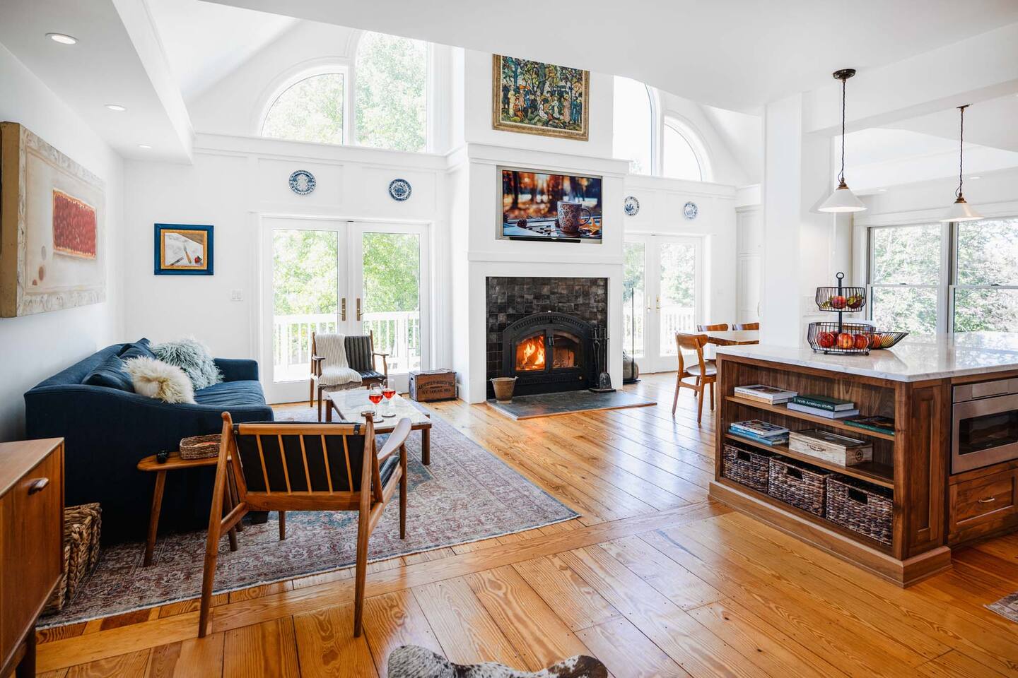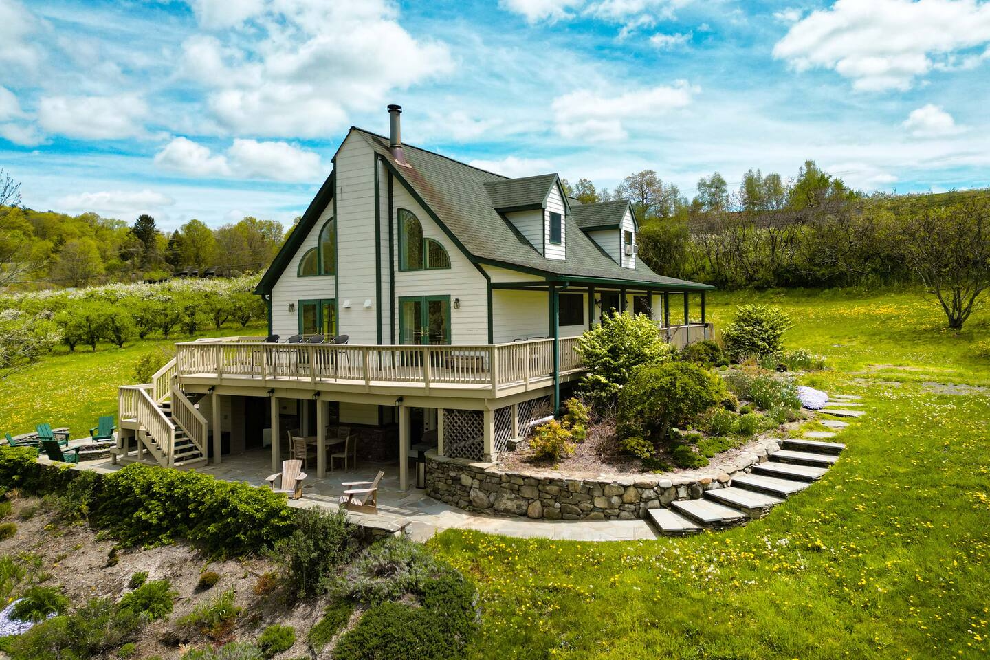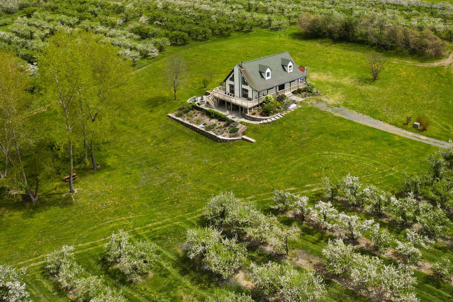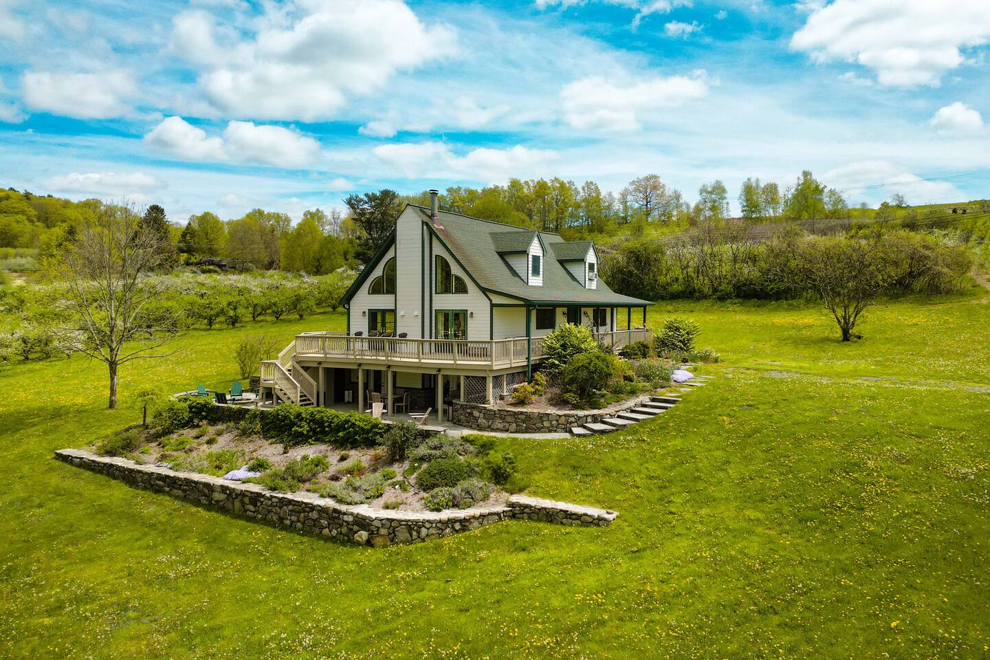 Surrounded by the breathtaking landscape of the Hudson Valley, our charming retreat is a hidden gem nestled within lush orchards. Imagine waking up to the gentle rustle of leaves and the sweet fragrance of ripe fruit. Spend your days strolling through nearby orchards, hiking scenic trails, or simply lounging on the deck, taking in the breathtaking views of the two ponds and vibrant sunsets. Walk for a delicious lunch or dinner at the nearby The Ridge by Mill House.