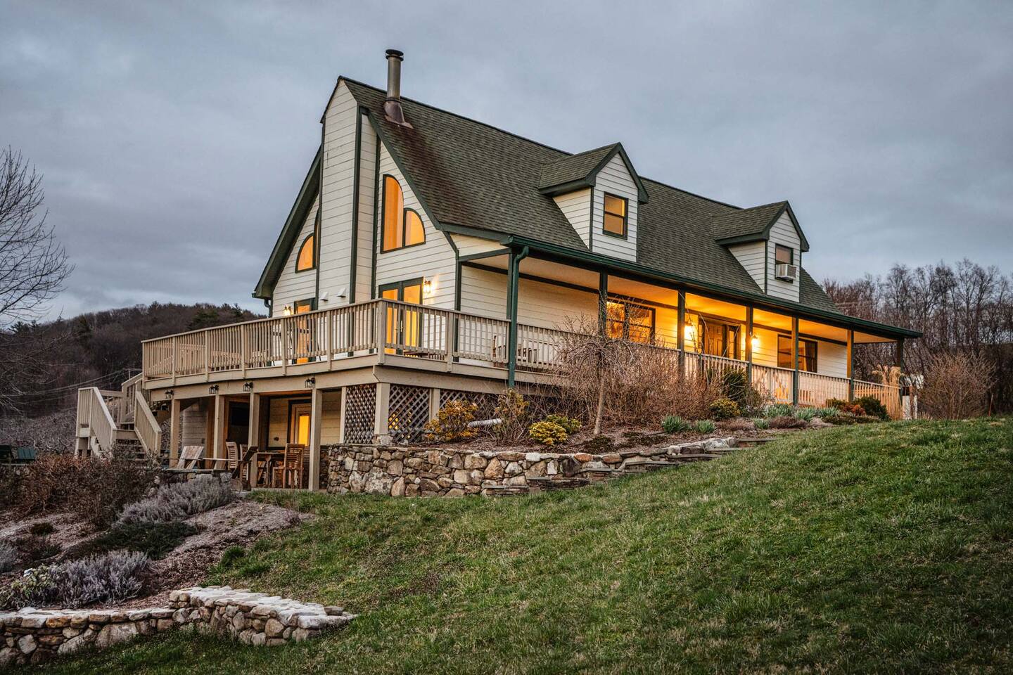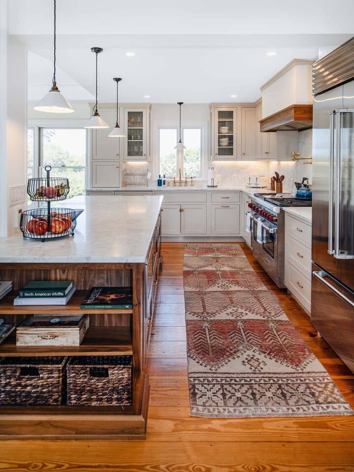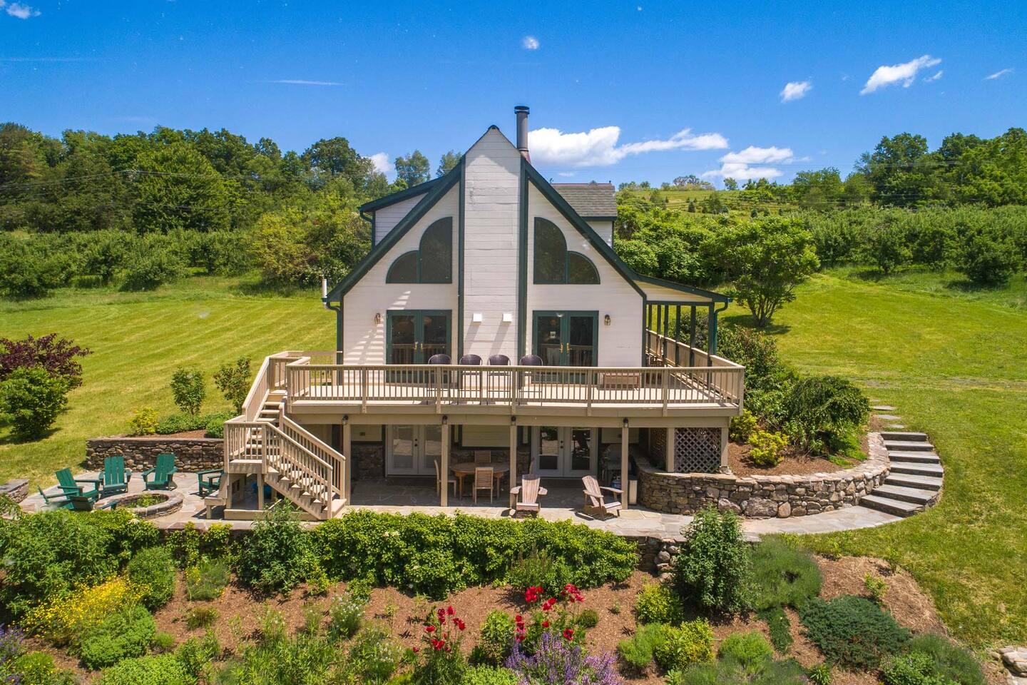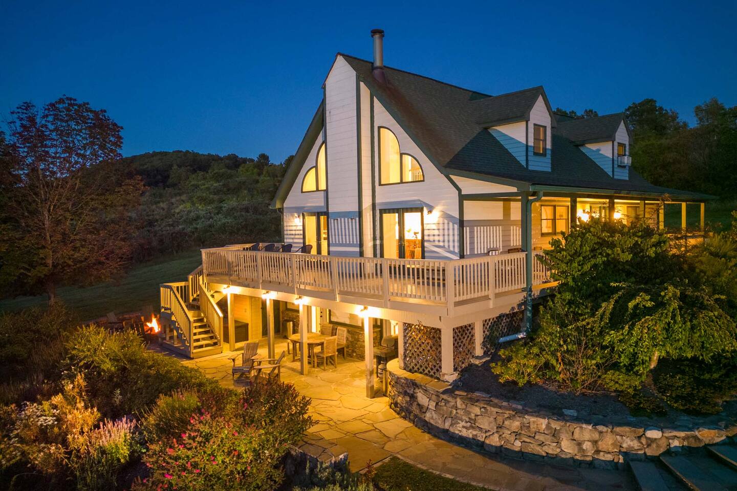 HOUSE RULES Please ensure every guest in the party is familiar with our house rules and house manual instructions. * Smoking and/or vaping is not permitted in the house. * Parties or unauthorized guests above the stated occupancy of the property are not allowed. * Be respectful to our neighbors and the community and keep the noise to a minimum. * No fires or coals are allowed on the decks, balconies, or porches. * The use of fireworks is not permitted. * Illegal substances are not allowed on the premises. * Do not rearrange the furniture or décor. * Refrain from activities that may damage the condition of the property for future guests or which result in excessive maintenance or cleaning. * The property is not childproofed, children must always be monitored by responsible adults. * Please exercise caution when enjoying the house amenities by following the posted instructions. * Please be mindful when exploring the grounds. It's advisable to wear appropriate clothing and use insect repellent to avoid tick bites, and avoid touching any unfamiliar plants to prevent exposure to poison ivy. ** We do not provide firewood for the fire pit and fireplace. QUIET HOURS 10pm - 8am PET/SERVICE ANIMAL RULES PETS ARE NOT ALLOWED IN THE HOME If we have made an exception and have allowed you to bring a pet or your service animal please follow the rules below: * Please keep the pet off of furniture and bedding. * Clean up accidents swiftly. If there is an accident that you're not able to clean yourself, please let us know as soon as possible. * Guests are responsible for any damage caused by their pet. The pet fee is designated for the additional cleaning service and will not be applied to the cost of any damages caused by the pet. * The pet must be crated if left without supervision. * Pets must be on a leash or in a carrier when outside of the home. * We do not know all of the plants that grow on the property. Please be mindful of how your pet interacts with the wildlife in the area. * Please pick up after your pet outside. CONVENIENCE FEES We like to be as accommodating as possible and some fees could be waived in certain special circumstances. * Early Check-in Fee (before 4:00 PM): $100 * Late Check-out Fee (after 11:00 AM): $100 * Dishwashing fee (only if dirty pots, pens, and large number of dishes are left in the sink): $100 * Grill cleaning fee (only if not cleaned after use): $50 TRASH The garbage bins are located by the driveway entrance. * Please make sure to dispose of the garbage bags by placing them inside the designated bins. If the bins happen to be at full capacity, please keep the garbage indoors to prevent any potential attraction of wild animals. CHECK OUT CHECK-OUT TIME IS 11 AM Please follow the check-out instructions: * Load and run the dishwasher. * Take the garbage out and place it inside the designated bins. If the bins happen to be at full capacity, please keep the garbage indoors to prevent any potential attraction of wild animals. * No need to strip beds or start laundry. * Don't forget to check all closets and drawers for any personal items. * Set heat to 60° in the winter months and AC off in the summer. * Turn off all lights. * Close and lock all doors and windows.