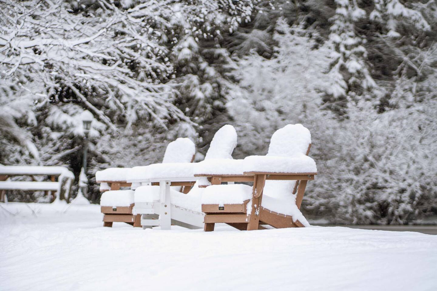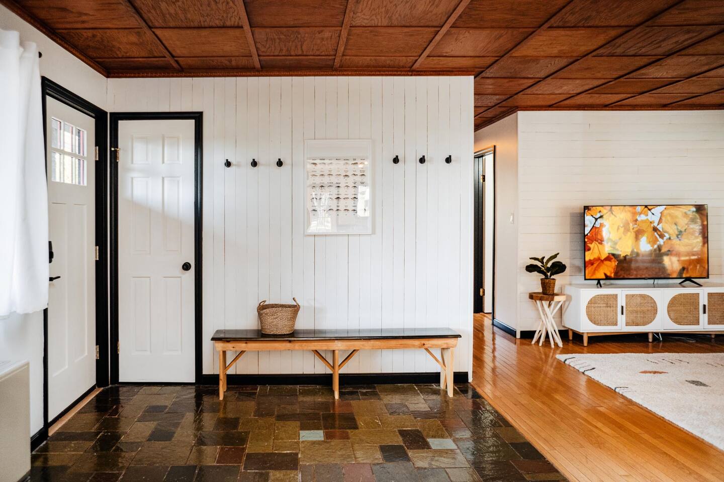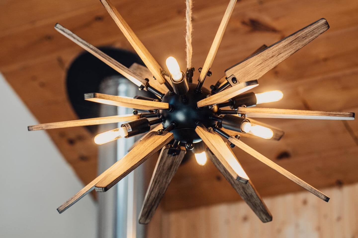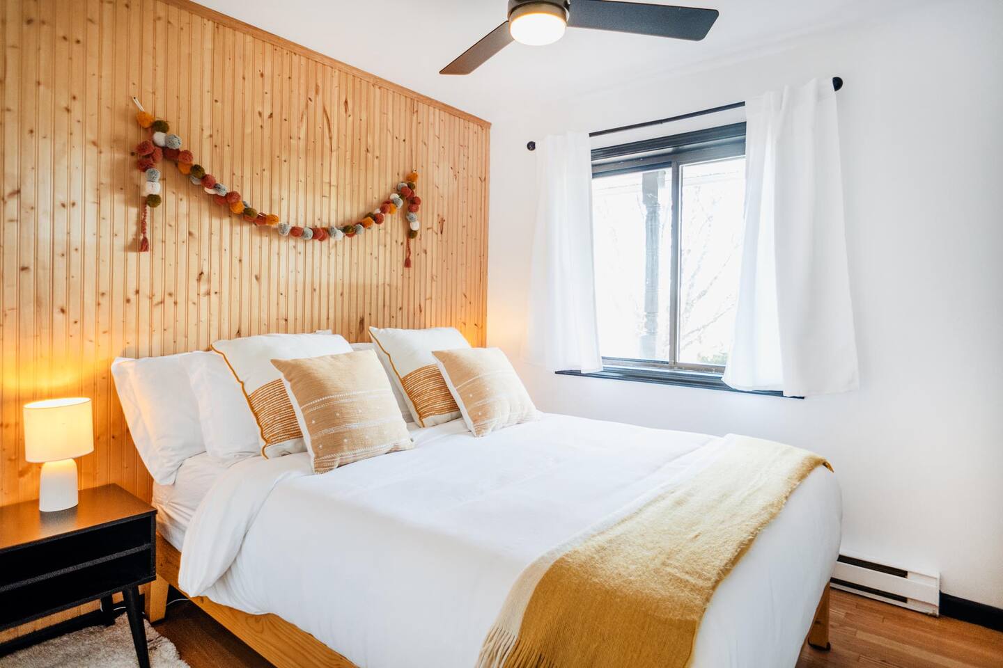 The house features four bedrooms + a bonus loft room (one king-size bed, two queen-size beds, two twin beds, and two convertible sleeper sofas) with large closet space, and plenty of storage room for extended stays - and no detail was spared when creating these plush accommodations. With generous windows on all four sides, guests can choose whether they prefer to wake up to the birds chirping outside their window or watch TV from the comfort of their cozy loft. Wood beams and high ceilings provide a rustic yet modern vibe that will put anyone at ease after exploring the area's many outdoor activities like hiking, kayaking, fishing, and more. And if you're visiting during fall or winter, there's always a roaring gas fireplace waiting for you right inside the living room! It doesn't matter what season, every day spent at The Pond Life is sure to be relaxing and unforgettable.
