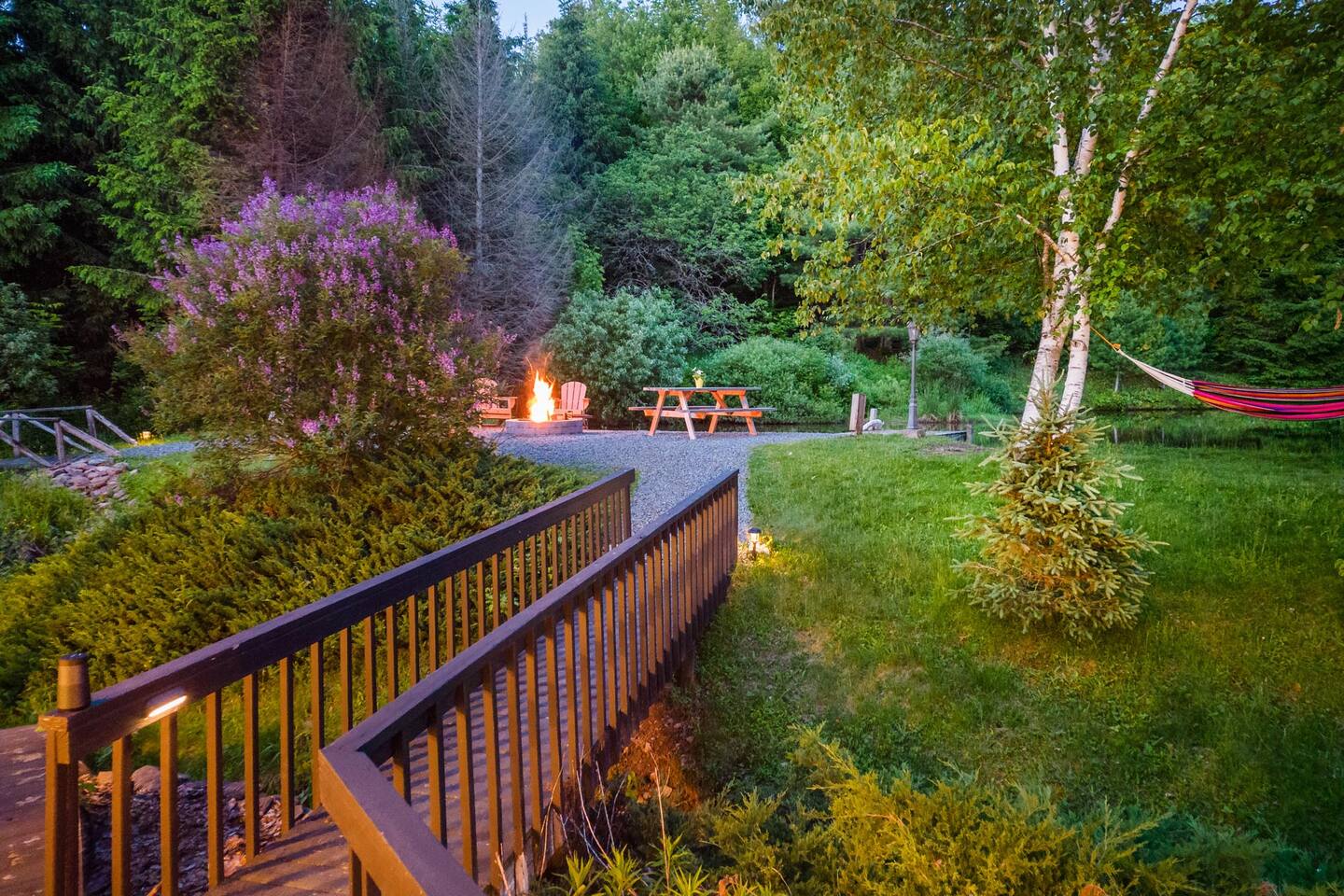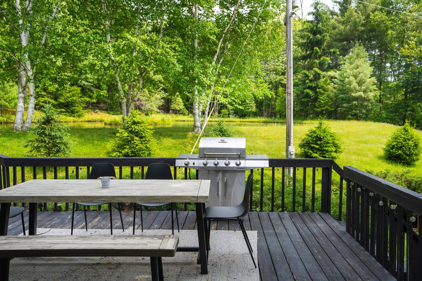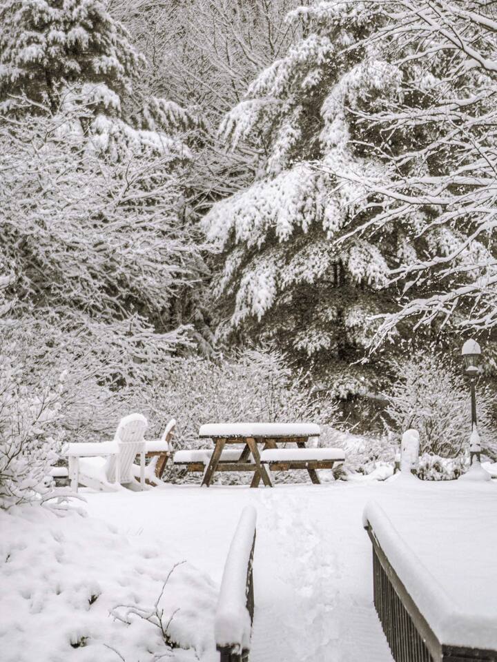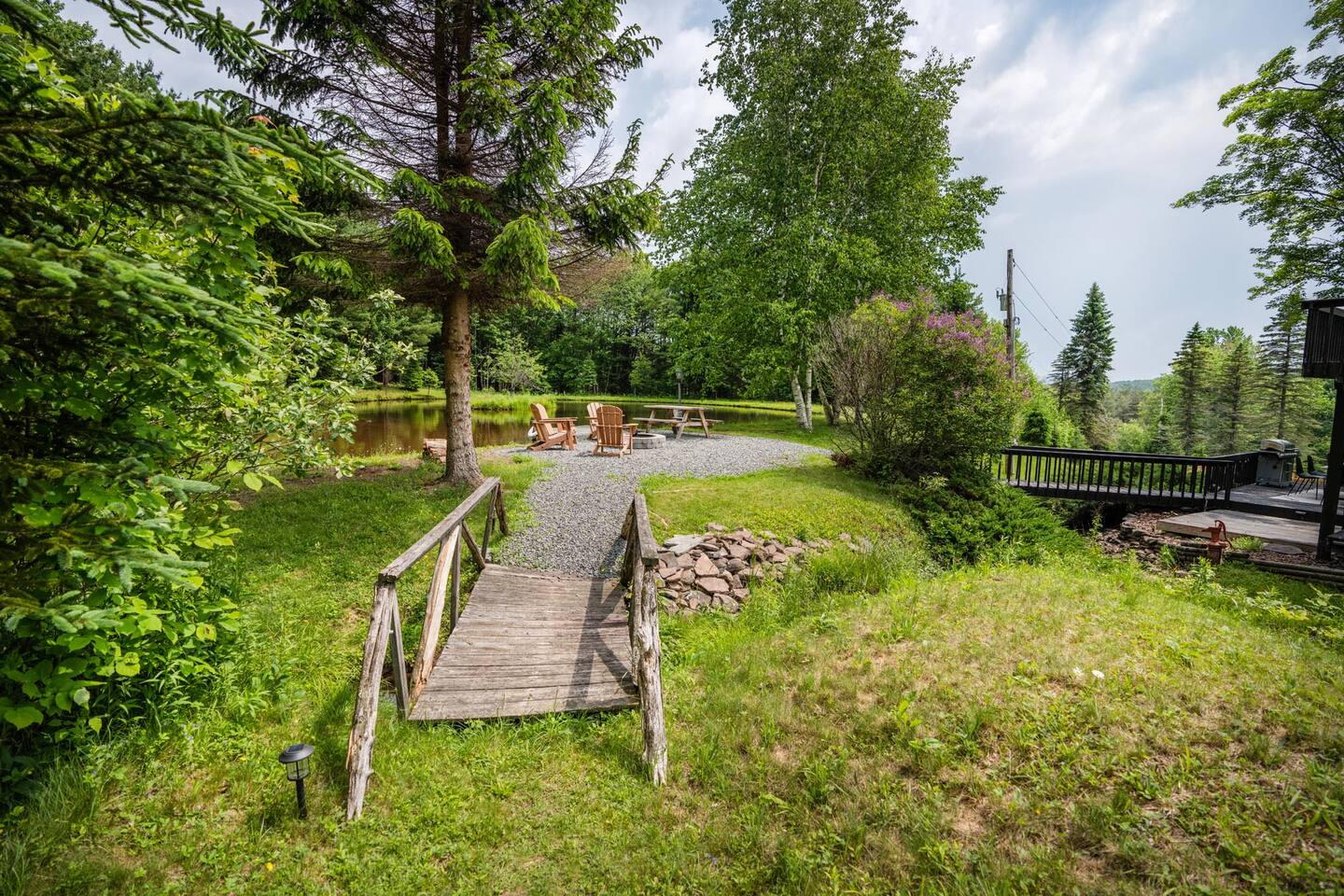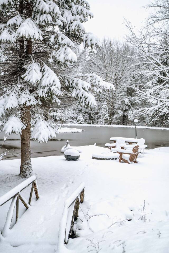 Please stay mindful while exploring the grounds, especially around the pond, decks, and other landscape features. Children must be under supervision at all times as the property is not child-proof. We require all guests to sign an additional liability waiver in case they are to use any outdoor amenities such as the multi-level decks, grilling, pond, fire pit, and hiking.