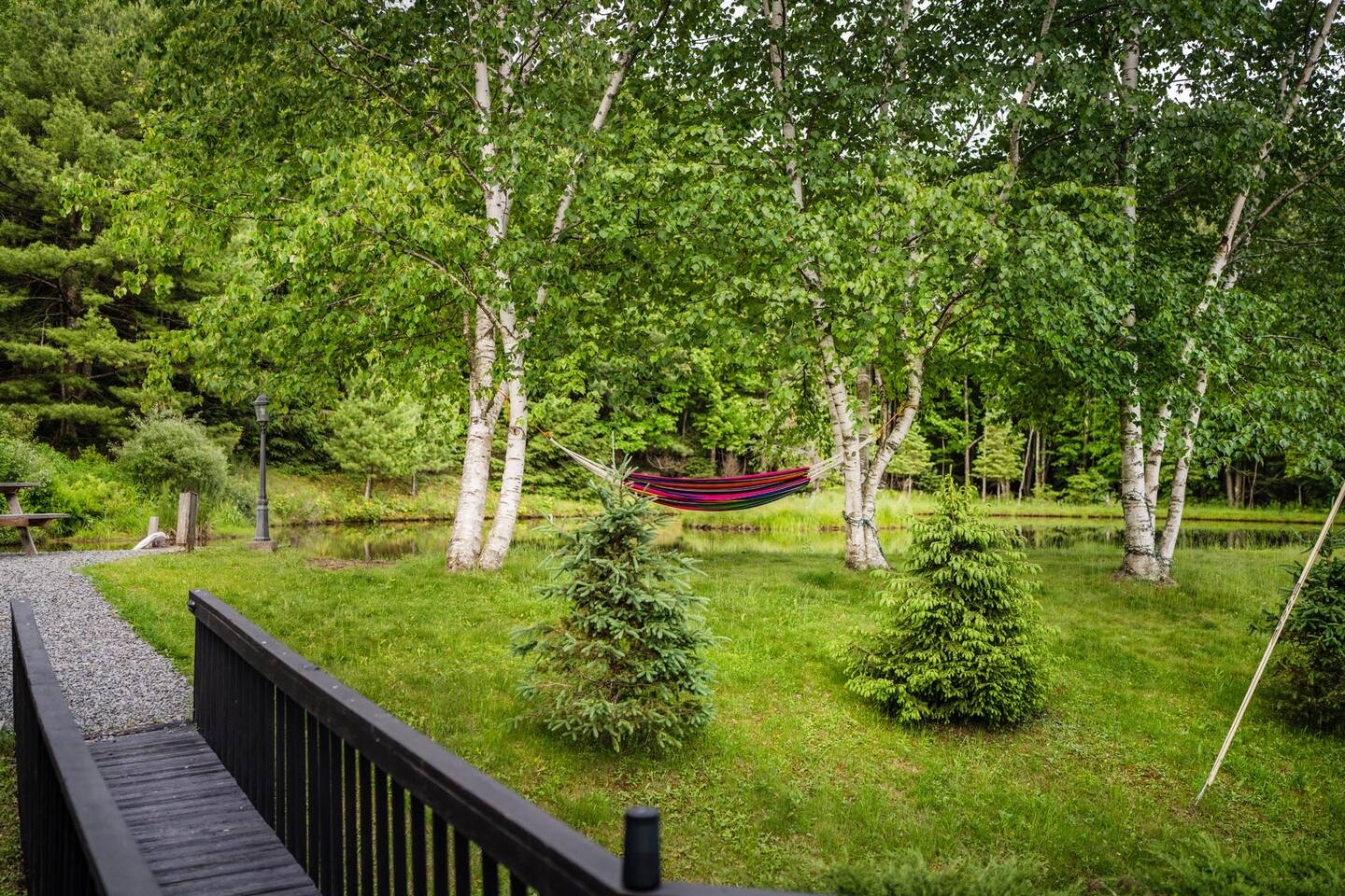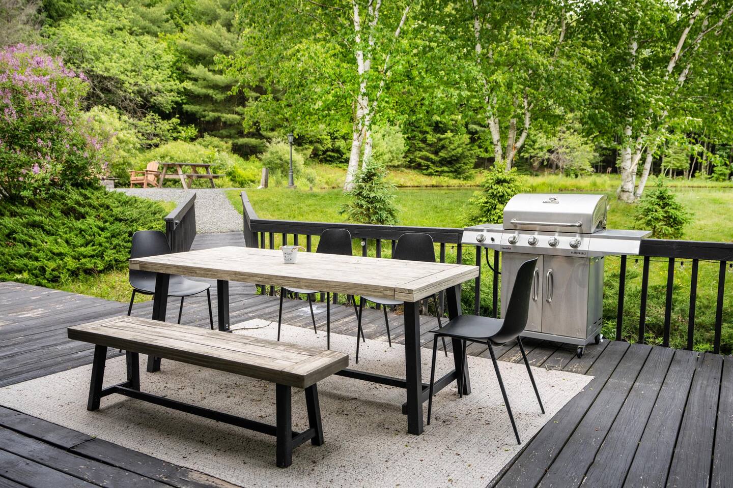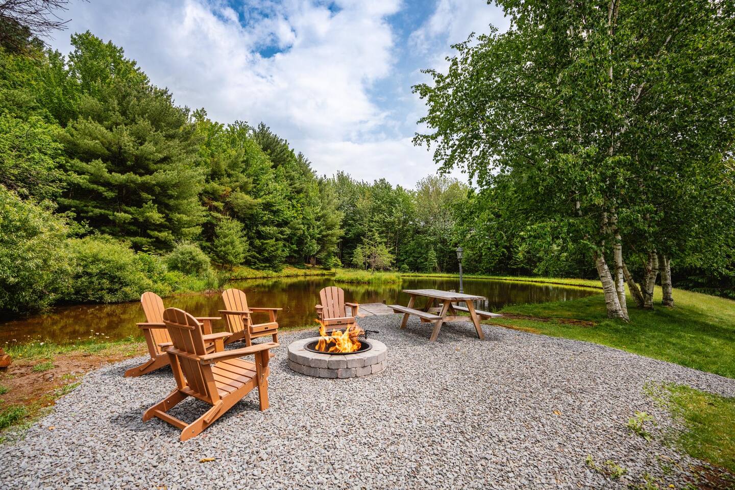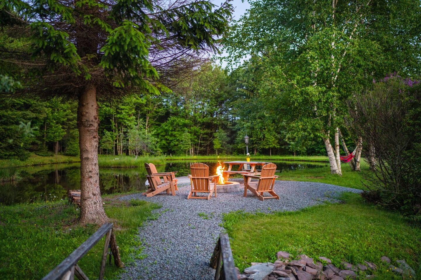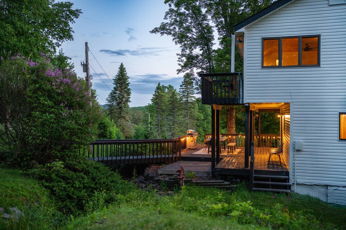 Please stay mindful while exploring the grounds, especially around the pond, decks, and other landscape features. Children must be under supervision at all times as the property is not child-proof. We require all guests to sign an additional liability waiver in case they are to use any outdoor amenities such as the multi-level decks, grilling, pond, fire pit, and hiking.