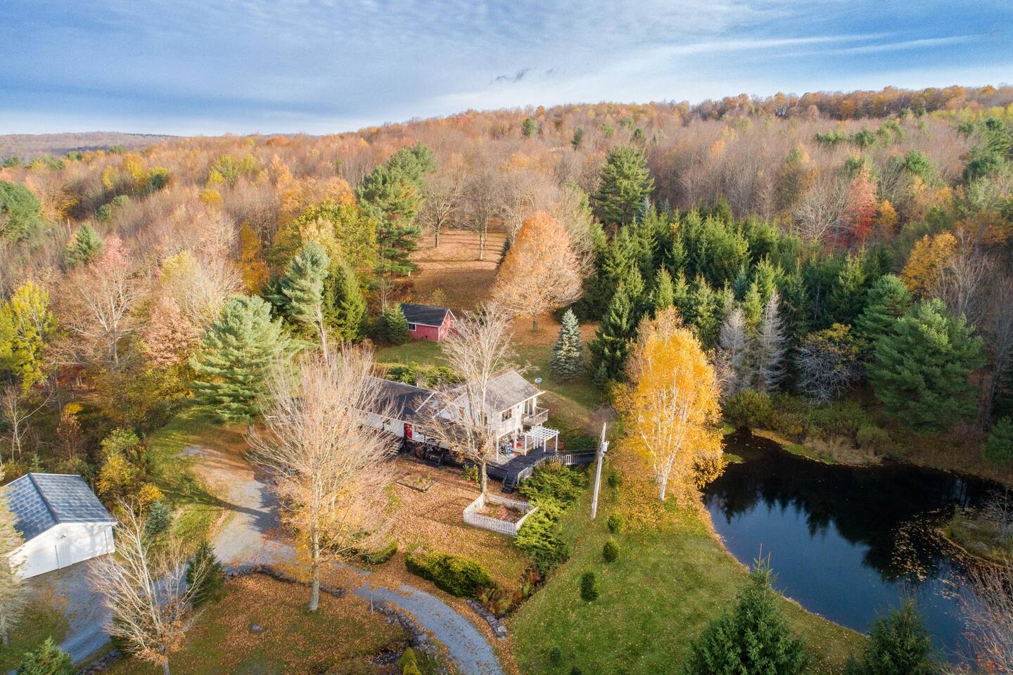 Alluvion Vacations invites you to discover a modern rustic farmhouse in Upstate, NY with acres of land to explore and a beautiful pond, fire pit, and a hassle-free gas fireplace to enjoy all year round. Nestled in the Catskill Mountains, just half an hour from Oneonta, and minutes from Delhi, this airy open space is perfect for everyone looking to enjoy the serene beauty. If you are looking for some alone time together, or want to get away from it all - this property offers the perfect escape.